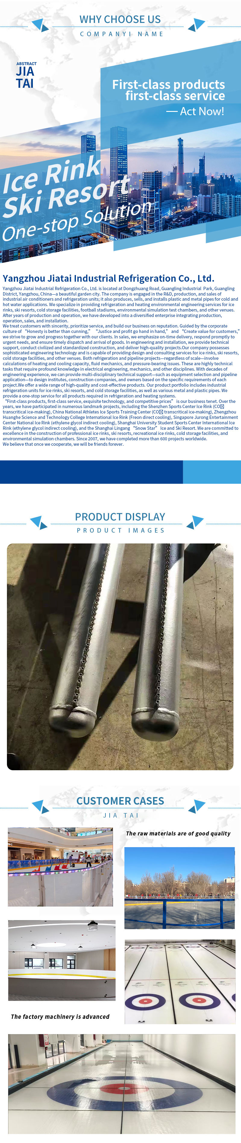 Мы стремимся предоставлять продукцию, соответствующую самым высоким отраслевым стандартам. Наши трубы для ледовых катков проходят строгий контроль качества, чтобы гарантировать их надежную работу, безопасность и эффективность. Выбирая наши системы трубопроводов, вы инвестируете в критически важный фундамент для вашего катка, который обеспечит превосходное качество льда, эксплуатационную эффективность и душевное спокойствие на долгие годы.