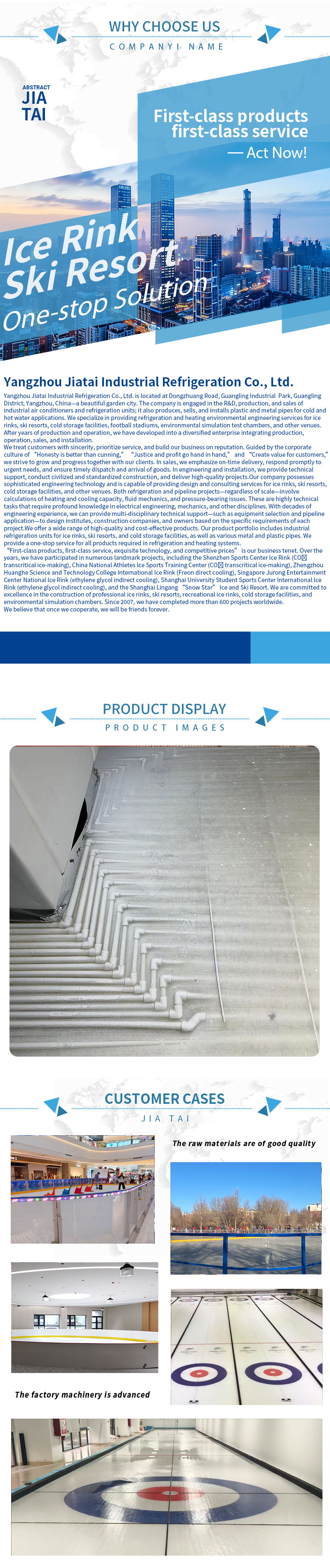 Наши системы трубопроводов универсальны и подходят для широкого спектра применений: от профессиональных хоккейных арен и объектов олимпийского размера до развлекательных катков и площадок для керлинга. Они совместимы с различными охлаждающими жидкостями и могут быть адаптированы к конкретным требованиям любого проекта.