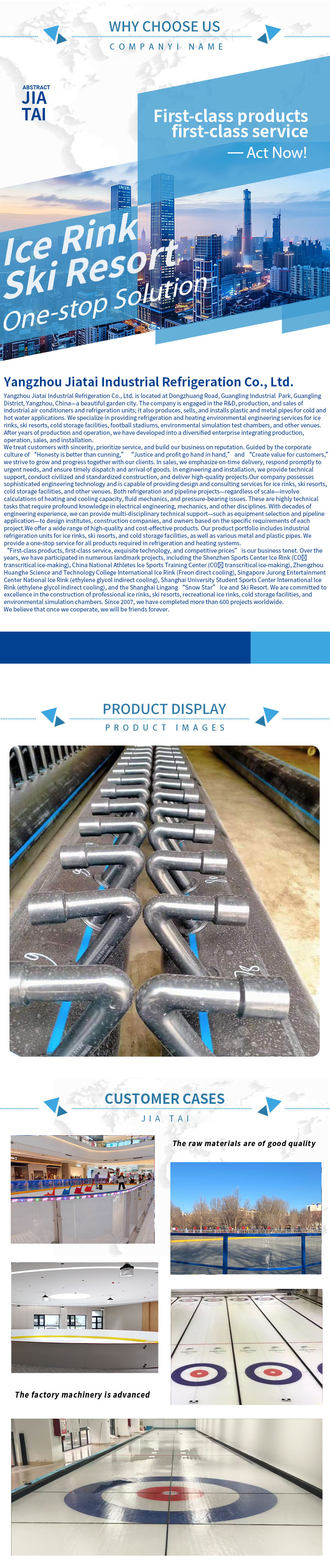 Наши системы трубопроводов универсальны и подходят для широкого спектра применений: от профессиональных хоккейных арен и объектов олимпийского размера до развлекательных катков и площадок для керлинга. Они совместимы с различными охлаждающими жидкостями и могут быть адаптированы к конкретным требованиям любого проекта.