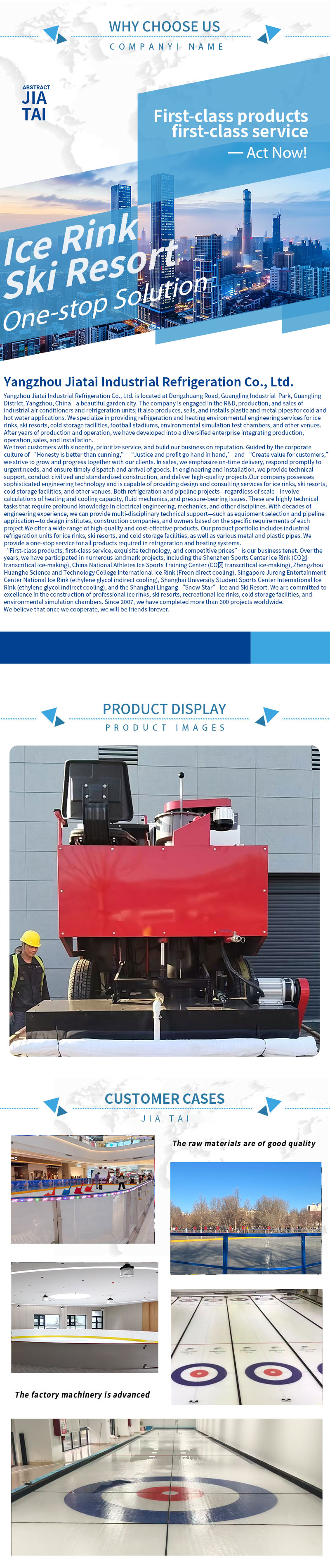 Мы стремимся предоставлять оборудование, отвечающее самым высоким стандартам качества и производительности. Наши устройства для ремонта ледовых катков проходят строгие испытания, чтобы гарантировать стабильные результаты, эффективность и долговечность. Выбирая наши машины для восстановления покрытия, вы инвестируете в важнейший инструмент, который повышает качество катания на коньках, сокращает время на техническое обслуживание и обеспечивает долгосрочный успех вашего ледового комплекса.